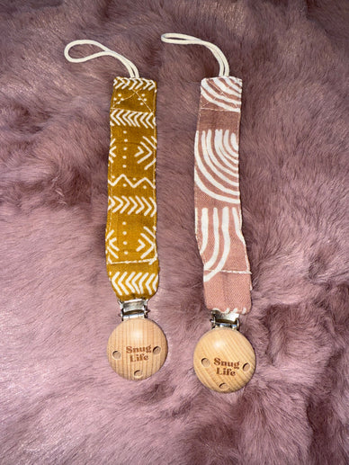 Prevent the throwaways and worries about hygiene with our muslin pacifier clips.